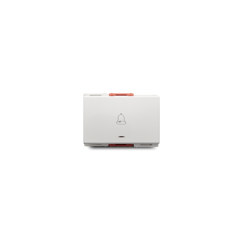 Pulsador de timbre con luz piloto de 16 Amp, 72mm, color blanco.